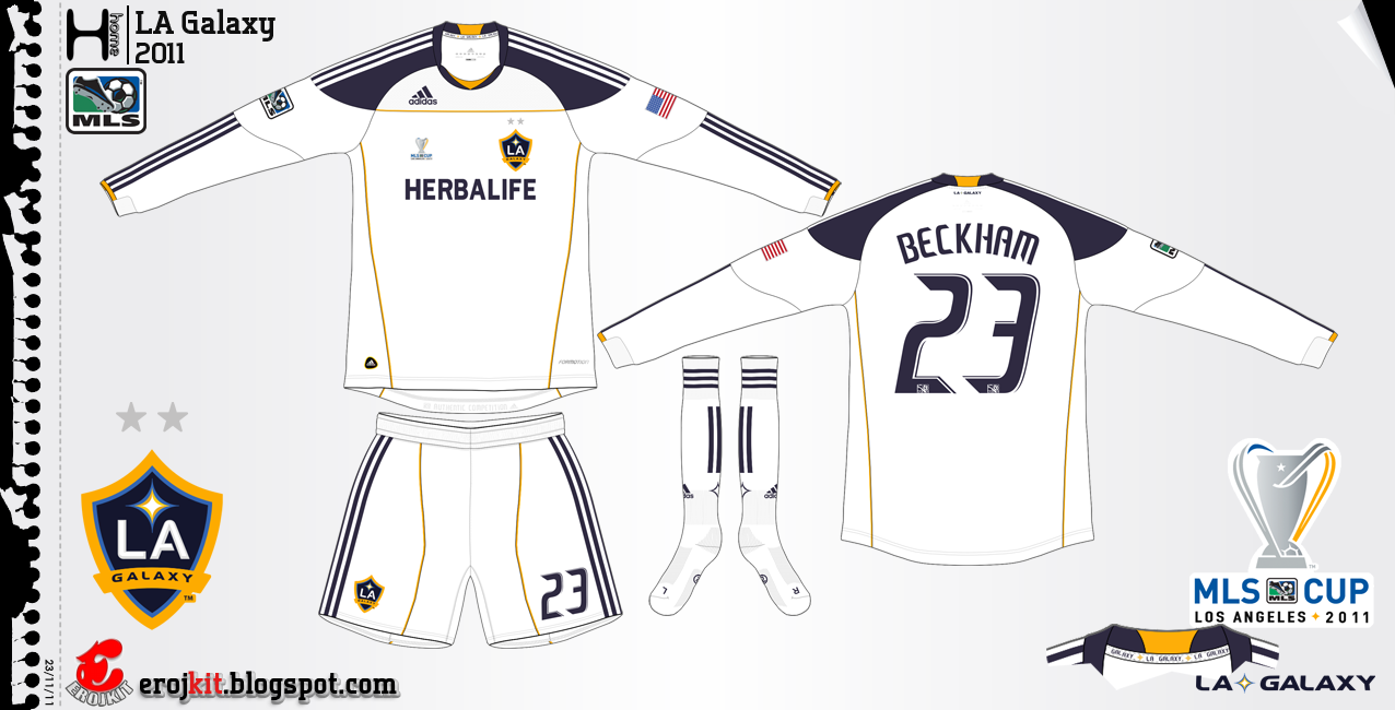 Para ilustrar os Kits, estampei o número 23 do astro do time, o inglês Davids Beckham, que todos sabem, só joga com camisas de manga longa. Sendo assim, aqui estão os 3 kits que a equipe de Los Angeles usou nessa temporada!